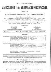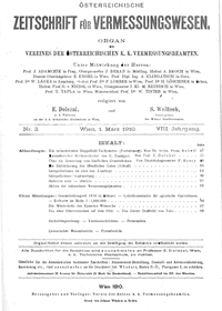 - Bericht über die am 3. und 4. Aprll 1910 im Seminar der geodätischen Lehrkanzel der k. k. Technischen Hochschule in Wien abgehaltene dritte ordentliche Hauptversammlung des Vereines der k. k. österr. Vermessungsbeamten