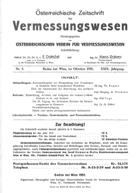 Enthaltene Fachbeiträge dieser Ausgabe- 1921-1931. Zehn Jahre österreichisches Bundesvermessungsamt