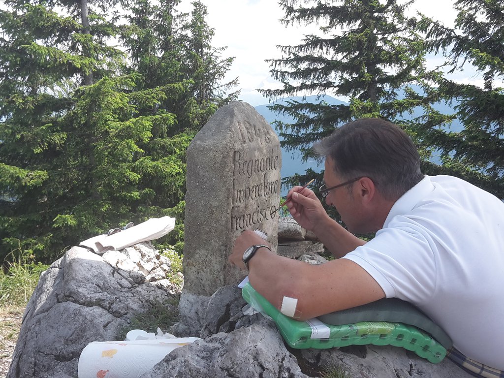 Jetzt wurde dieser besondere Vermessungsstein fachmännisch restauriert. Nach der Befreiung von Moosen und Flechten wurde der Stein mit einer vor Witterungseinflüssen schützenden Schicht versehen und die Schrift mit einer dezenten Acrylfarbe lesbar gemacht. Dabei waren die Eigentümer der Liegenschaft, der Bürgermeister von Grünau im Almtal, Mitarbeiter des BEV sowie Prof. Dr. Peter Waldhäusl und Dr. Christoph Twaroch als Mitglieder der "Arbeitsgemeinschaft Grenzstein" der Österreichischen Gesellschaft für Vermessung und Geoinformation anwesend. Die Arbeitsgemeinschaft Grenzstein engagiert sich im internationalen Projekt "The Network of Boundaries and its Monuments" mit dem Ziel, diesen historischen Triangulierungsstein - neben anderen Objekten - durch die UNESCO zum Weltkulturerbe erklären zu lassen.