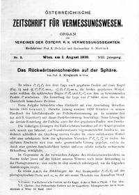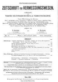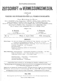 - Bericht über die am 3. und 4. Aprll 1910 im Seminar der geodätischen Lehrkanzel der k. k. Technischen Hochschule in Wien abgehaltene dritte ordentliche Hauptversammlung des Vereines der k. k. österr. Vermessungsbeamten