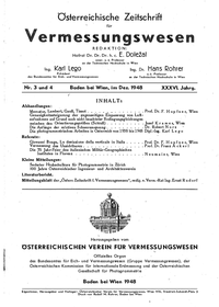 - Die photogrammetrischen Arbeiten in Österreich von 1938 bis 1948